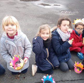 Vendredi 13 janvier: toute l'école a fêté l'épiphanie en dégustant les galettes des rois préparées par les maternelles! Frangipane, chocolat, pommes, il y en avait pour tous les goûts! Un grand merci à eux, c'était convivial et délicieux.